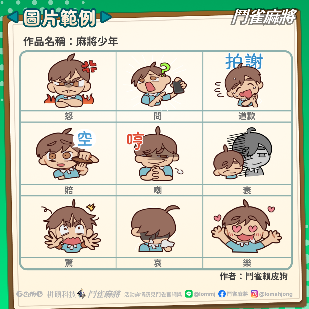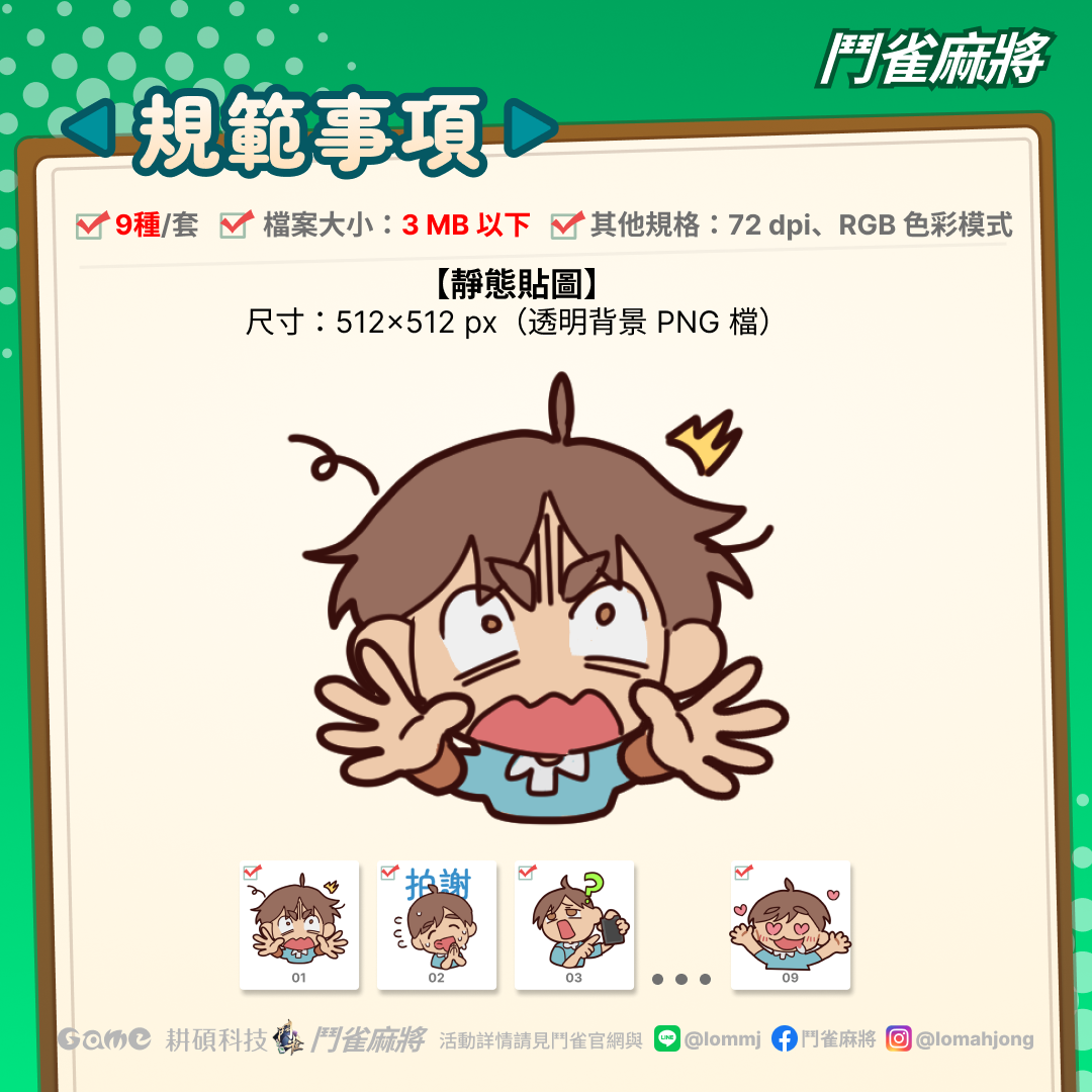 📂 投稿格式:9 張圖(用貼圖主題命名) + 1 張目錄(貼上所有的貼圖以及命名),製成壓縮檔後再完成投稿即可。